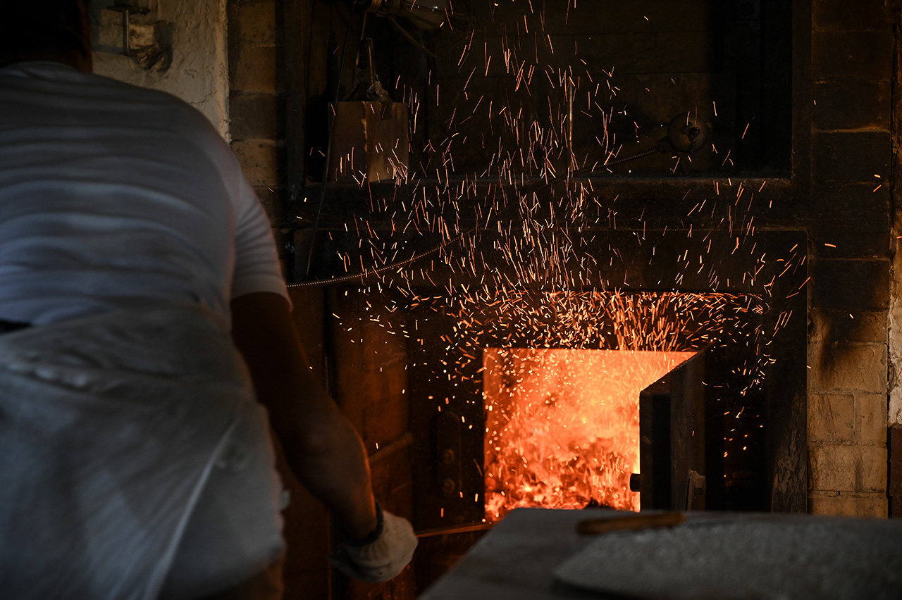 石窯でつくった窯にパンを入れ